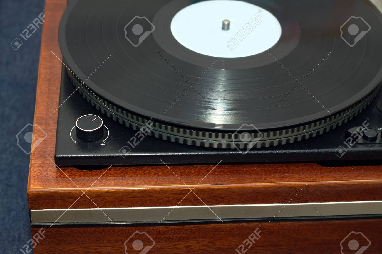 Part Of Vintage Classic Record Player In Wooden Case With Black