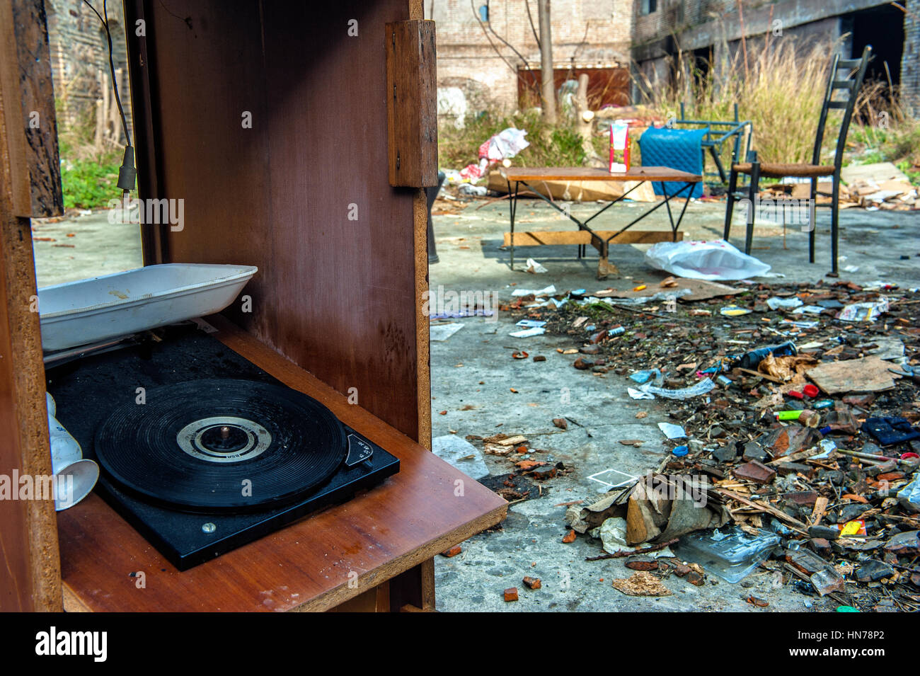An Old Bulky Record Player Stands In The East Hall Of The Former