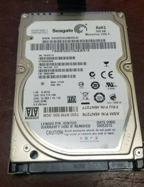 Lenovo Thinkpad 45n7277 500gb 7200rpm 2 5 Sata Notebook Hard